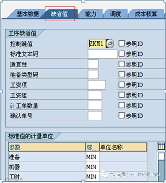 准备: MIN(指使用该工作中心的工序,准备时间缺省计量单位是分钟)