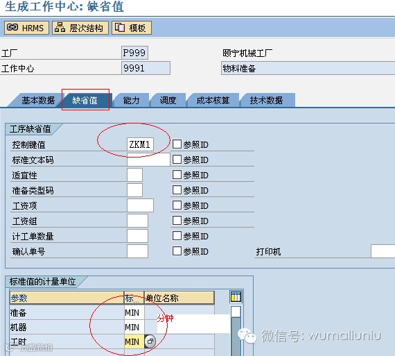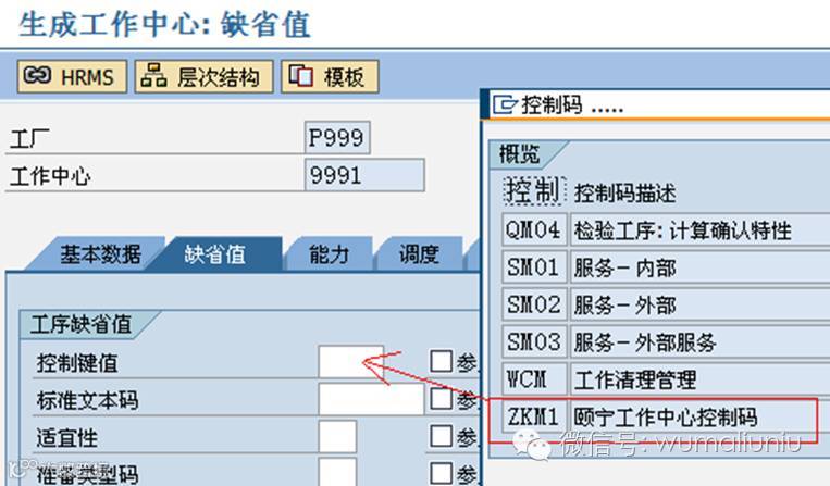 控制键值: ZKM1(指将来使用这个工作中心的工序,缺省的控制码就是"ZKM1")