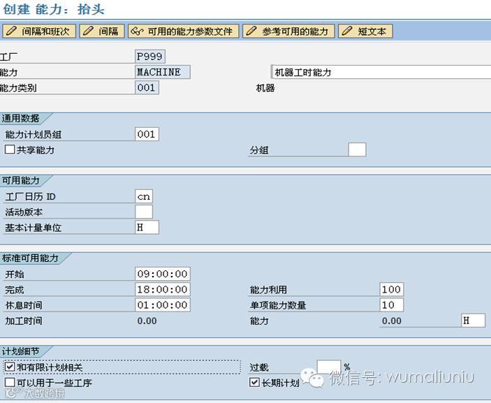 前一课向大家分享了工作中心的负责人和控制码的定义,本课将跟大家分享机器和人工的工时能力、工时类别工作中心的定义。