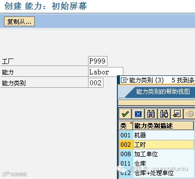 能力类别: 002(和"能力"字段一起定义了这个工作中心使用的是颐宁公司的统一的