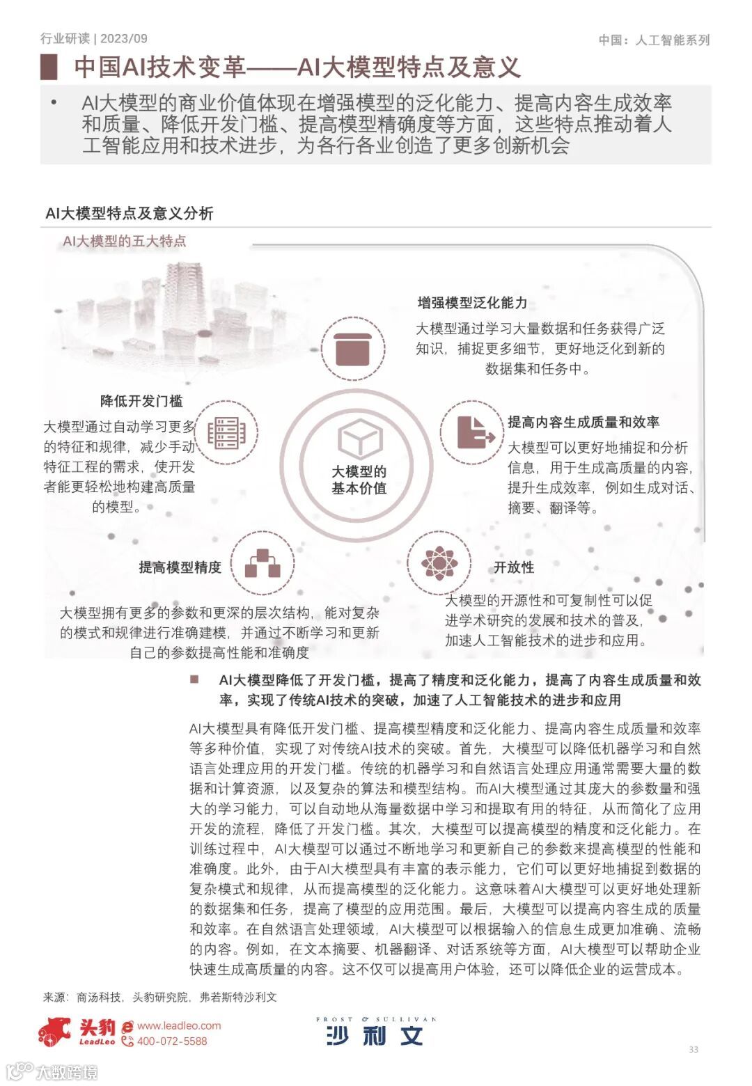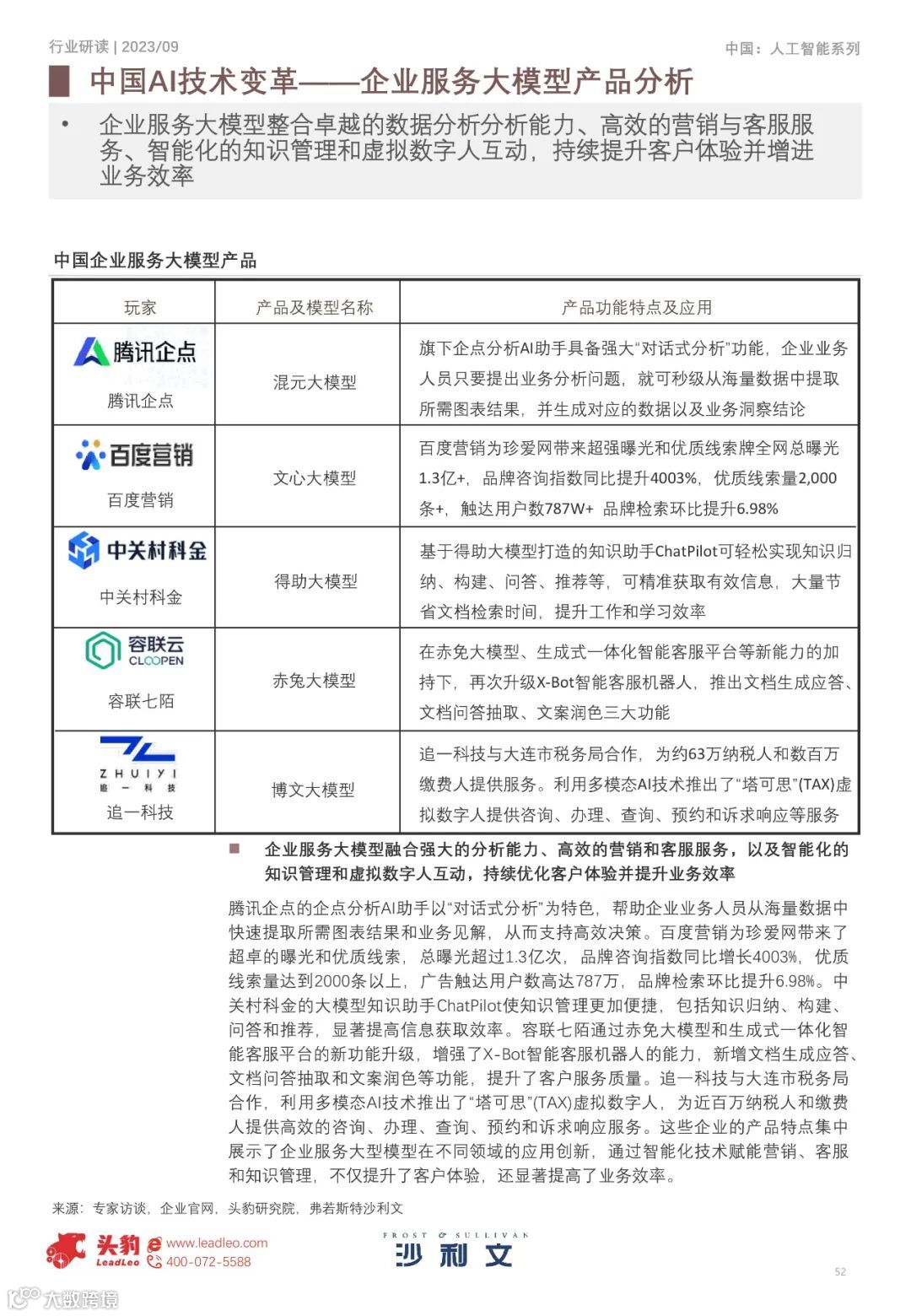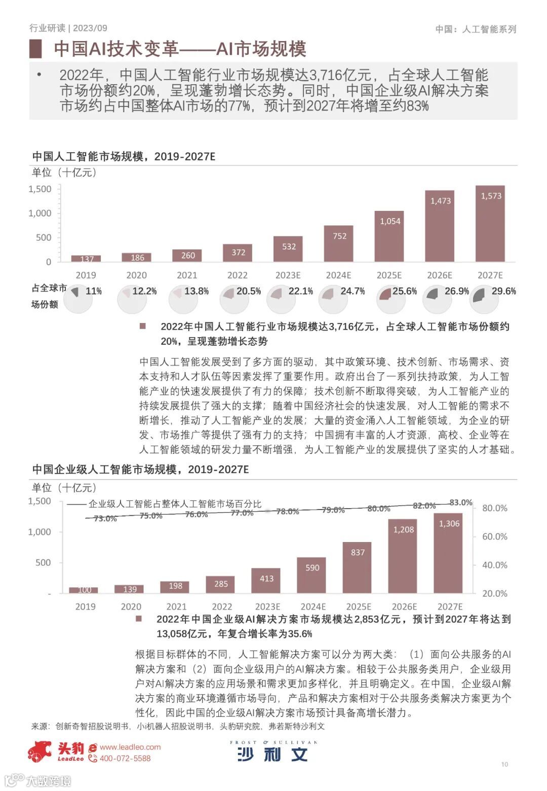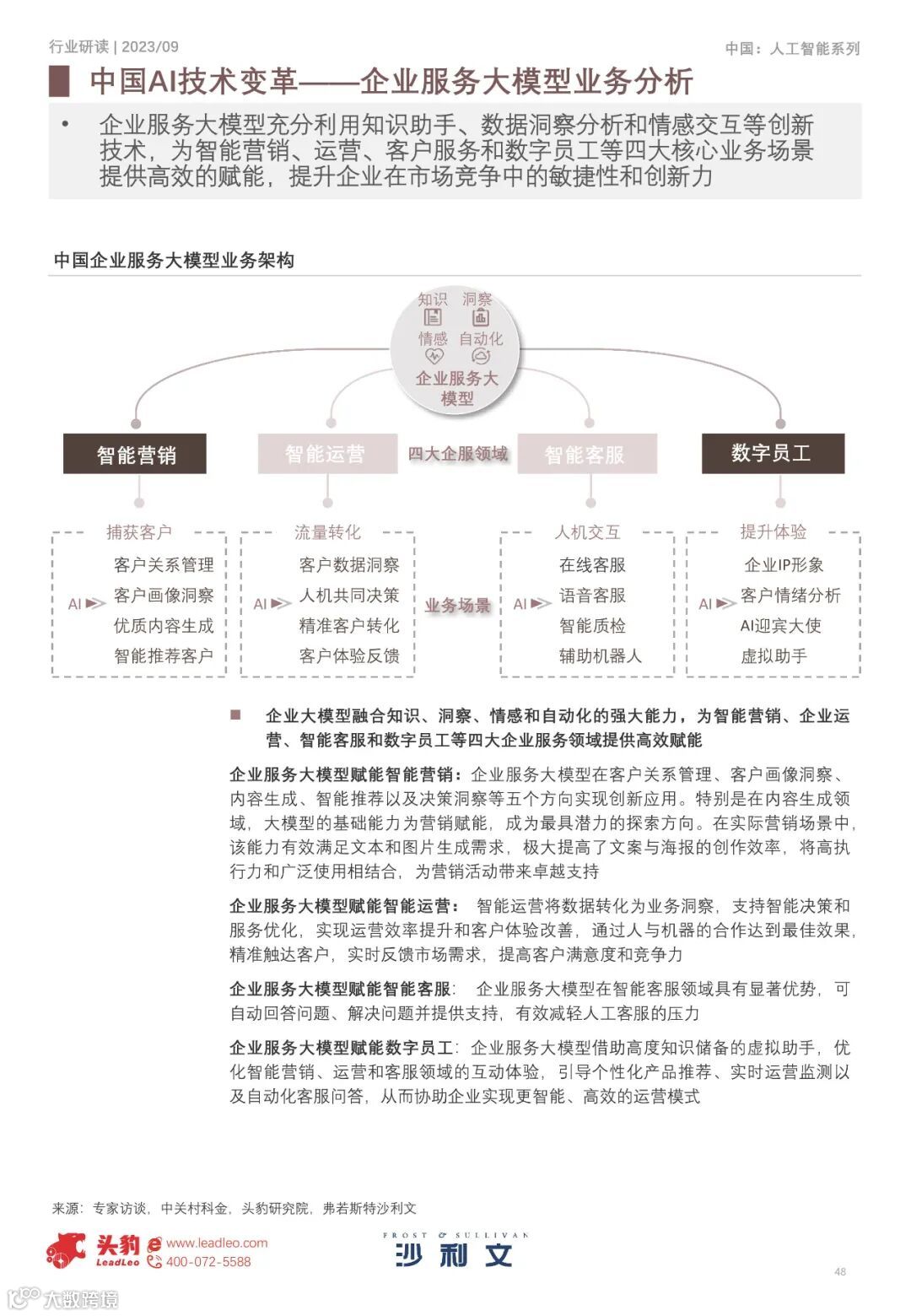2023年被称为“AI元年”,人工智能、AI大模型概念迅速点燃市场。本篇报告重点关注人工智能相关技术在广泛的企业服务领域所带来的变革应用研究,将洞察中国AI技术如何为企业服务领域带来发展与应用方面的升级和演变,同时分析行业规模、落地应用、未来趋势,提供AI变革企业服务场景应用的理解和解读。