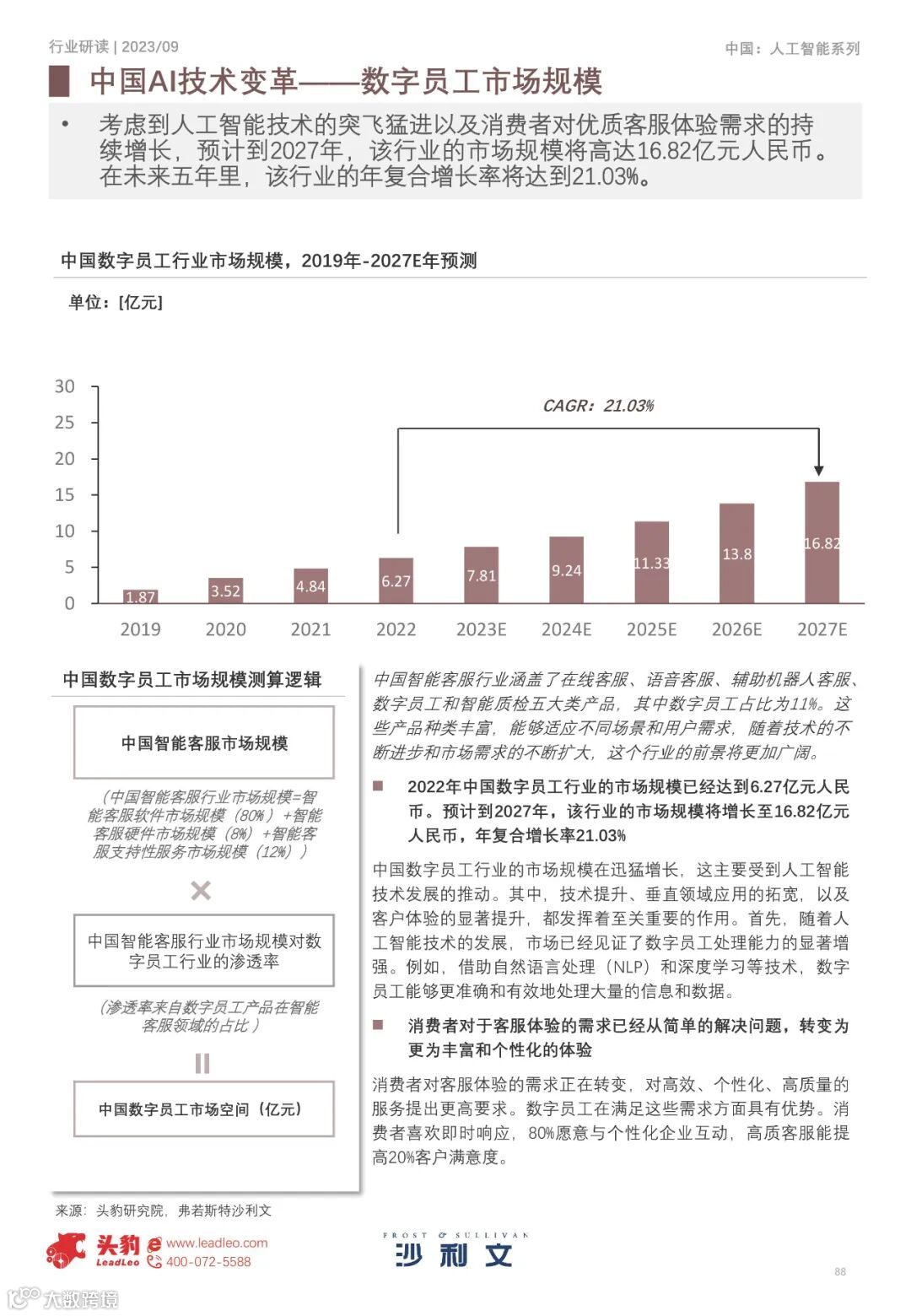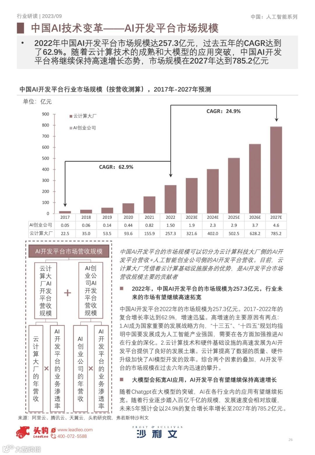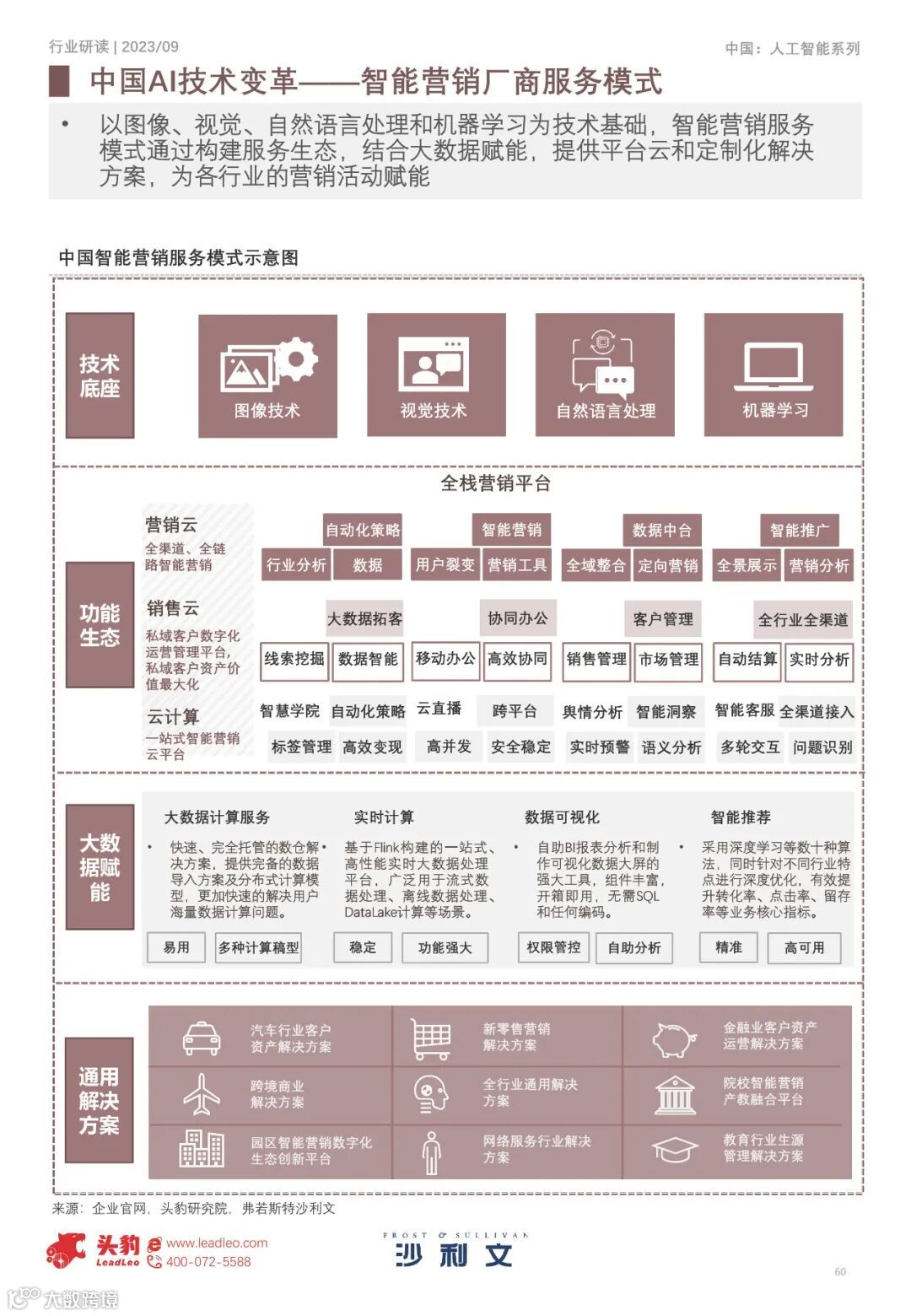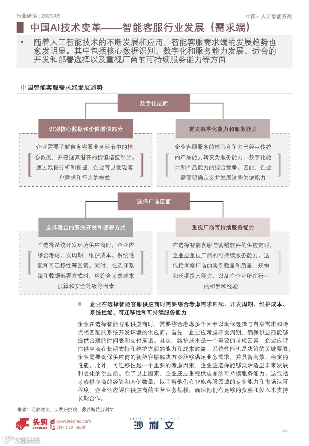 2023年被称为“AI元年”,人工智能、AI大模型概念迅速点燃市场。本篇报告重点关注人工智能相关技术在广泛的企业服务领域所带来的变革应用研究,将洞察中国AI技术如何为企业服务领域带来发展与应用方面的升级和演变,同时分析行业规模、落地应用、未来趋势,提供AI变革企业服务场景应用的理解和解读。