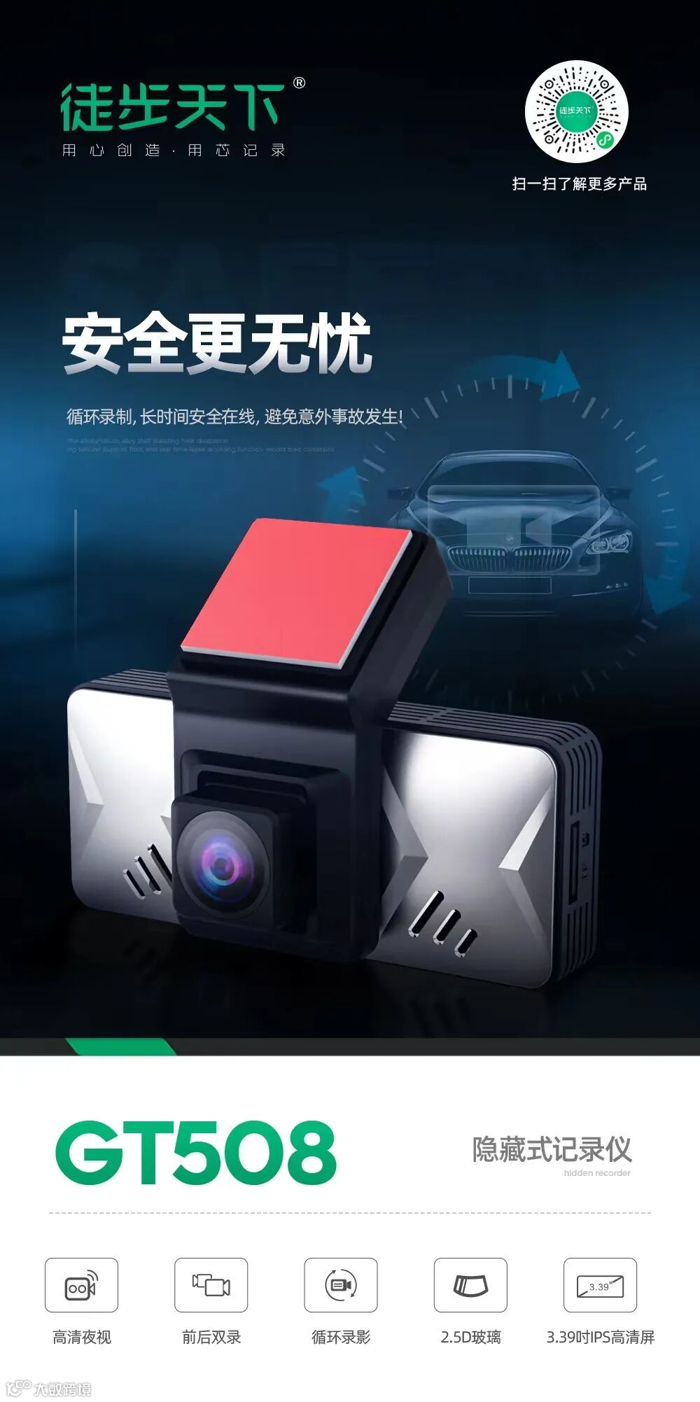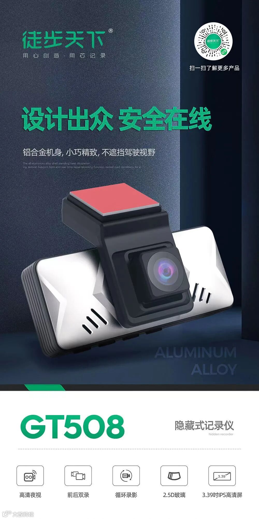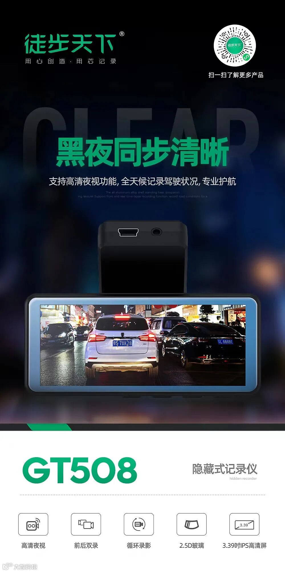 而今天,我们将继续此前的分享,仍旧为大家介绍徒步天下行车记录家族中,一款亮眼的存在----徒步天下GT508隐藏式记录仪。
