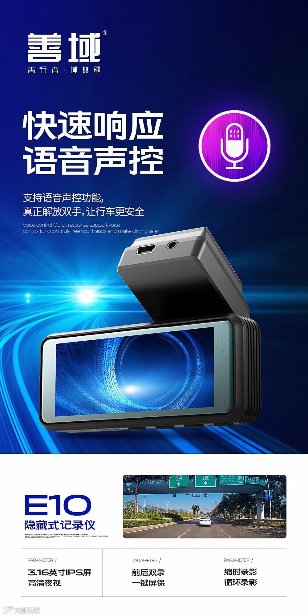 善域E10支持语音声控功能,能够通过指定的指令操控行车记录仪,无需采用手动的方式,语音声控智能操作,更方便车主行车驾驶。