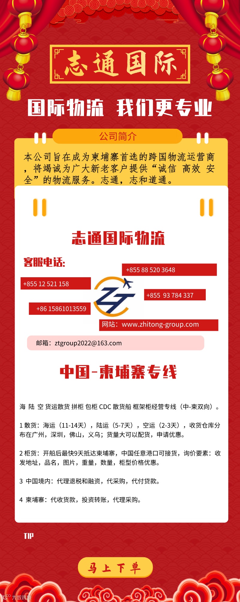 *脸书Facebook:https://www.facebook.com/ztlogistic/