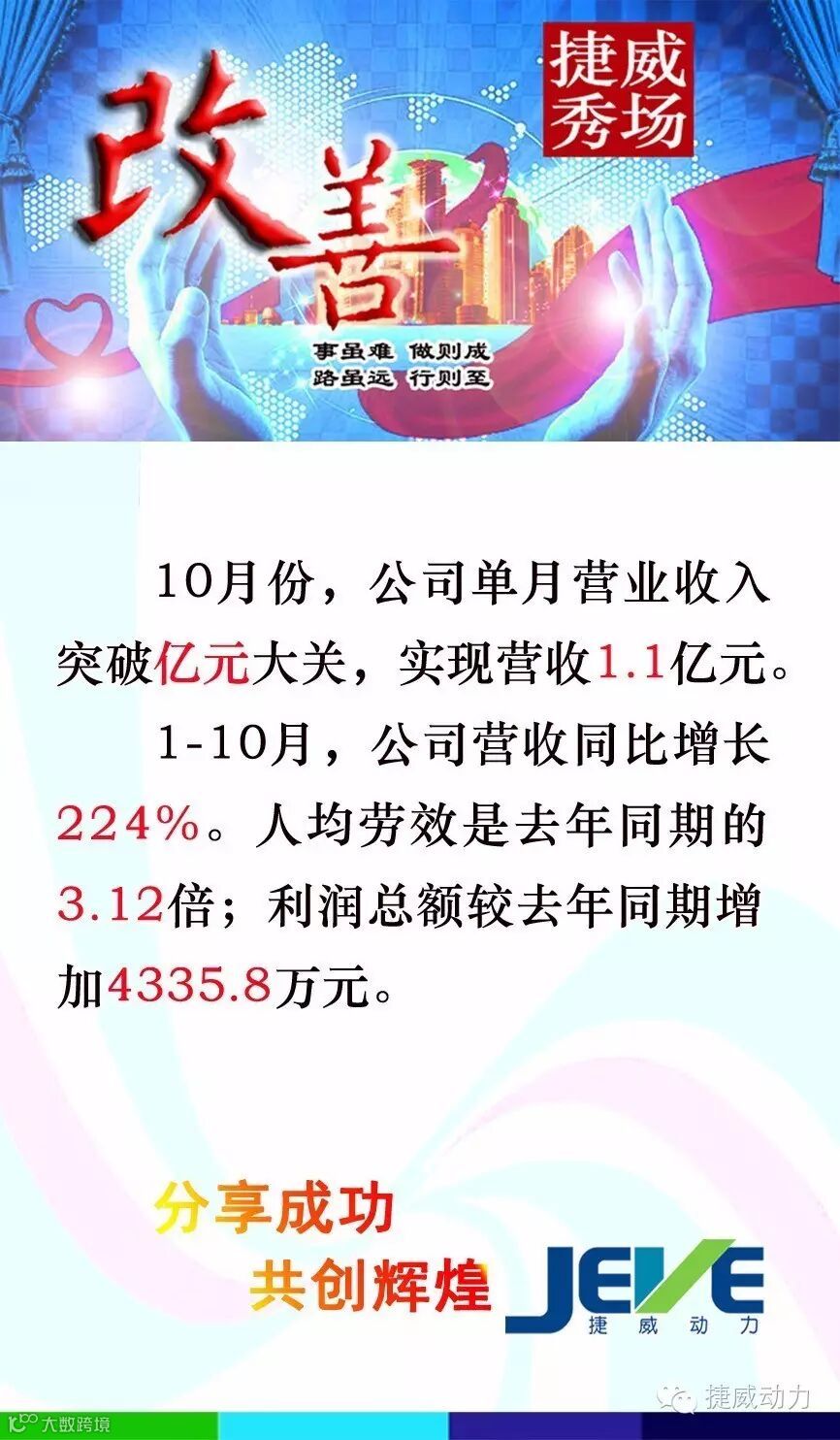 【捷威秀场】今年前10个月捷威动力营收同比增长224%