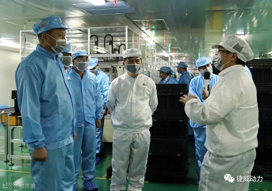 张志祥董事长陪同遵化市委、市政府领导参观捷威生产线。