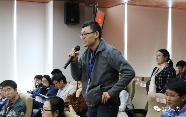 现场交流提问环节,气氛十分热烈,博士同学们积极提问,捷威动力公司高层领导耐心、细致地回答每一个问题。