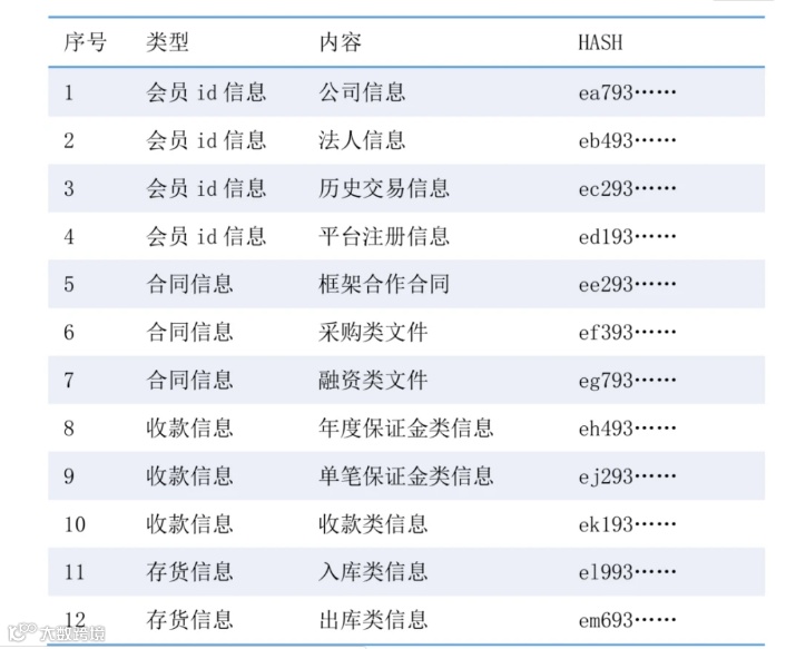 具体指客户提出申请、风控审核、与客户签署融资合同、保证金交款以及应收账款确认的资产形成全流程。通过区块链浏览器的方式,可对相关上链节点数据可视可信化,审计方核验时,可通过HASH值比对的方式来确认数据文件信息的真实性。