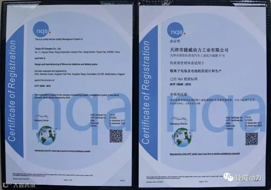 日前,捷威动力顺利通过IATF16949:2016质量管理体系转版认证,获得由上海恩可埃认证有限公司颁发的转版质量管理体系认证证书,捷威也成为国内首批获得此证书的企业之一。IATF16949:2016质量管理体系认证证书的取得,为捷威动力赢得更多EV客户奠定了基础。