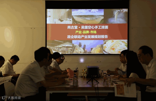 在考察的第二天,吴堡县人民政府县长高苗等领导考察团抵达尚古堂南山办公室,就挂面产业项目的“产业·品牌·市场”进行了政企座谈会。