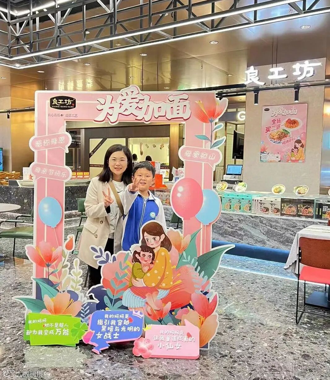 母亲节这一天,良工坊发起“为爱加面”活动,从报名的粉丝朋友中特邀6对亲子到线下形象店参与此次活动。