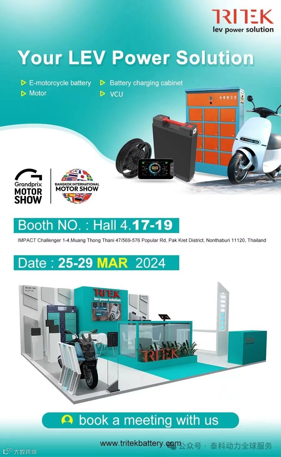 泰国国际摩托车及电动车展览会(Bangkok International Motor Show)于2024年3月25日至4月7日举行,我们将在此展会上展示我们最新的电动摩托车动力系统产品。