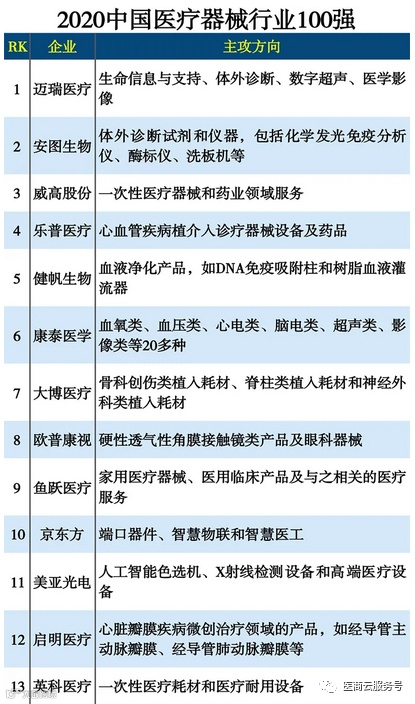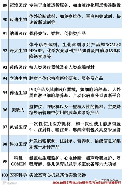 日前,eNet研究院与互联网周刊等联合发布发布了《2020中国医疗器械行业100强》榜单。
