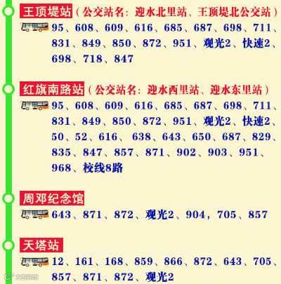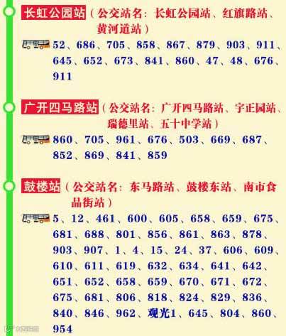 中山门站(津塘路上,轻轨站西侧):便民9、17,30,185,503,605,613,621,642、643、651、656,668、673、680,806,830,840,856,857,860,872、905、机场巴士