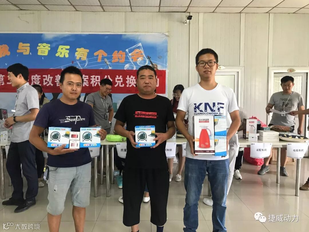 2019年7月11日,捷威动力第二季度改善提案积分兑换活动在天津本部顺利开展,来自生产板块相关的计划管理部、物流管理部、设备部、质量中心、电池系统制造部、电芯制造部等12个部门纷纷参与,活动现场员工积极参与,气氛活跃。