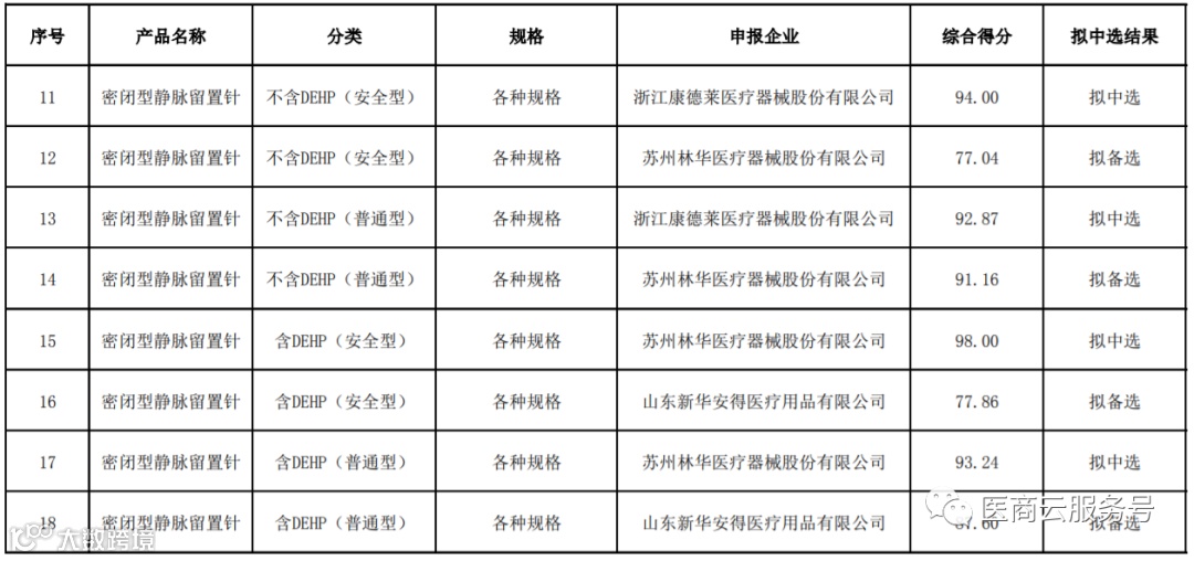 7月21日讯 7月17日,青海省药品和医用耗材集中采购网发布《关于公布青海省公立医疗机构留置针带量采购中选结果的通知》,根据名单,本次中选企业包括BD、贝朗、威高、新华医疗等国内外知名械企。