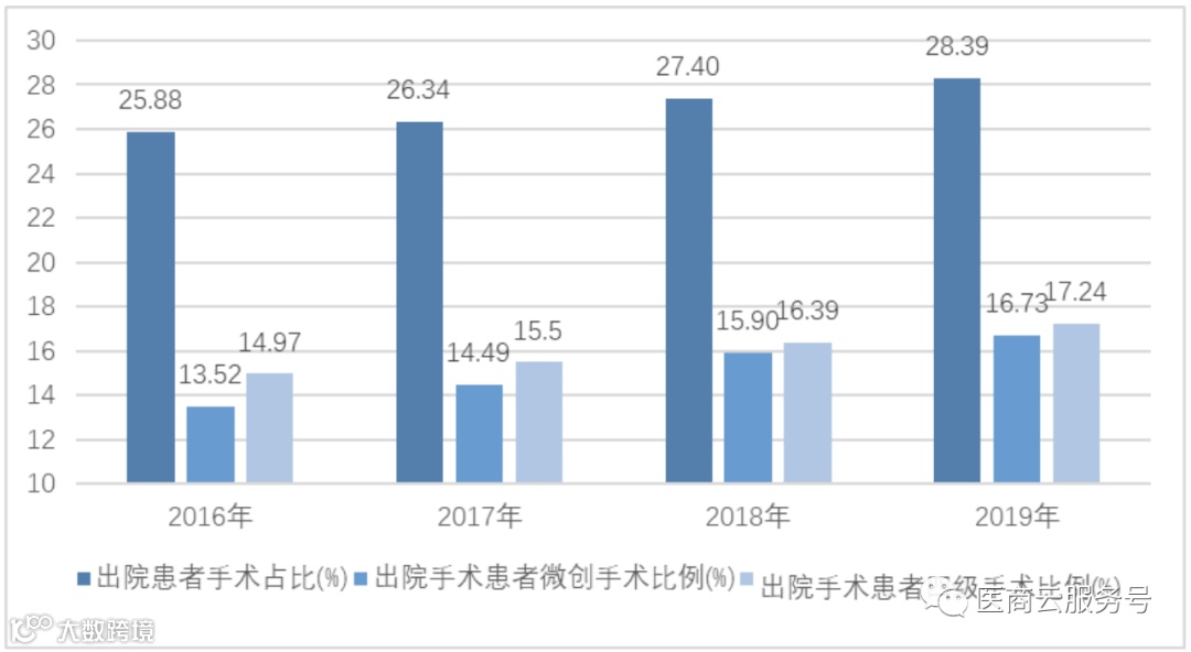 图2:2016-2019年三级公立医院出院患者手术开展情况