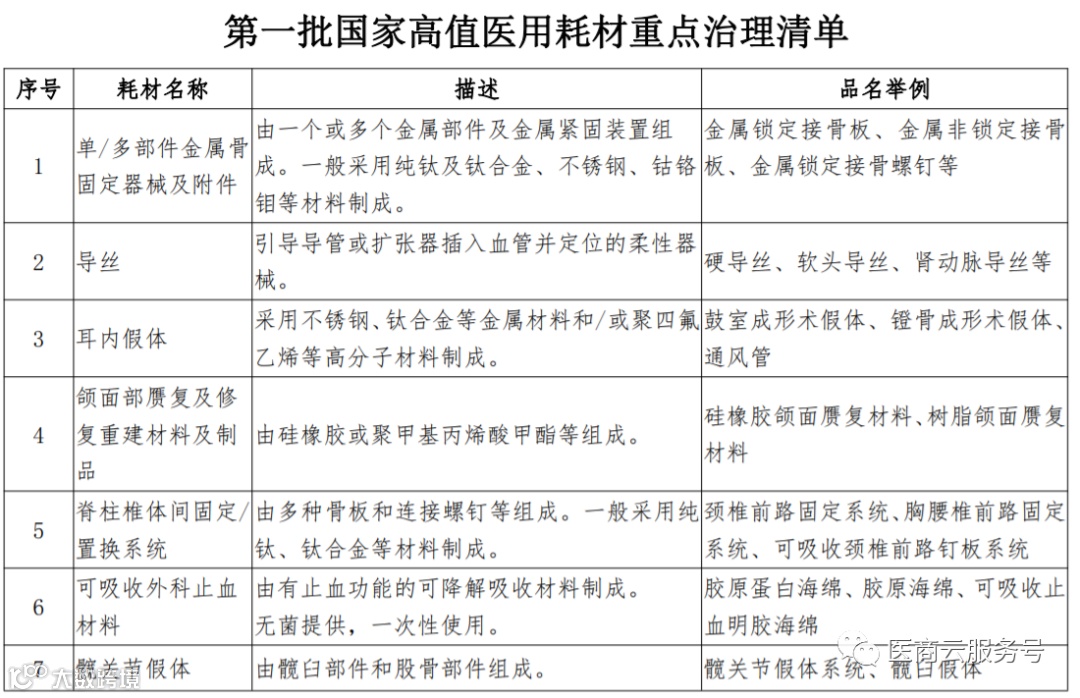 2019年7月31日,国务院发布《治理高值医用耗材改革方案》再次强调,将单价和资源消耗占比相对较高的高值医用耗材作为重点治理对象,并要求完成第一批重点治理清单。
