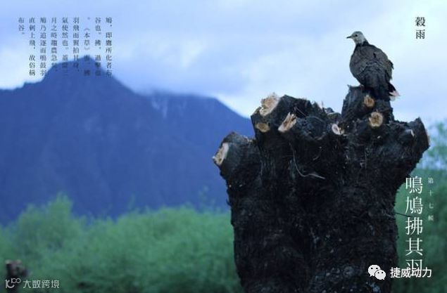 “第一候萍始生;第二候鸣鸠拂其羽;
