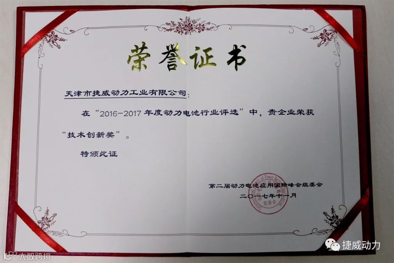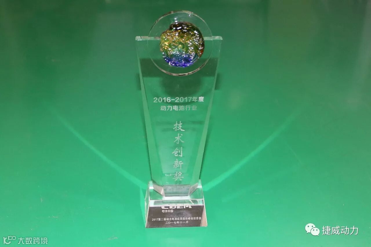 2017年11月16日晚,在“2017第二届动力电池应用国际峰会暨第三届中国电池行业智能制造研讨会”上,备受瞩目的“2016-2017年度动力电池行业评选”结果揭晓,捷威动力荣获2016-2017年度动力电池行业“技术创新奖”。