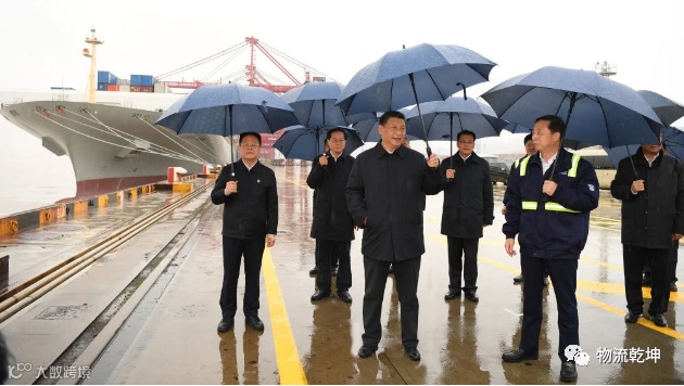 29日下午,习近平总书记此次浙江之行的第一站,是宁波舟山港的穿山港区。透过镜头可以看到,总书记是冒雨撑伞考察。