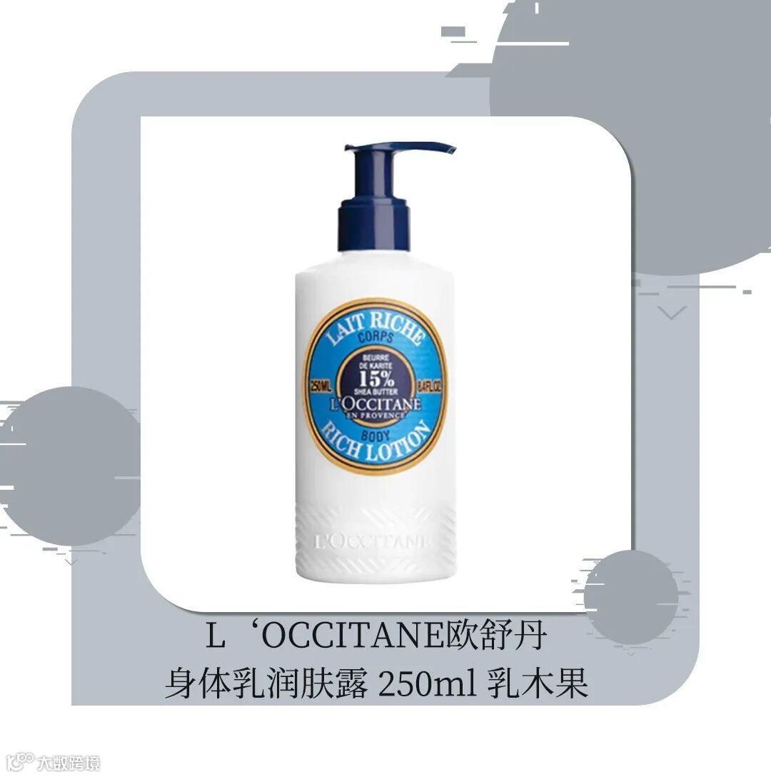 欧舒丹乳木果身体乳润肤露富含15%乳木果油,质地醇和的润肤露质地,在为肌肤温和清洁的时候还能为肌肤持续保湿滋养,缓解由干燥造成的肌肤不适感。自然芳香的乳木果香气,在使用时就能倍感舒适。