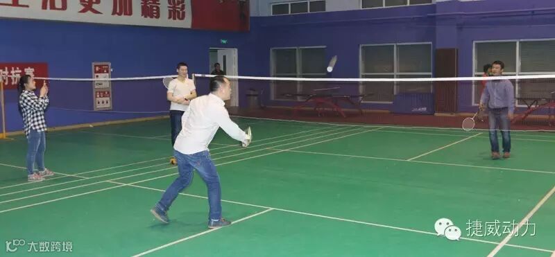 捷威动力4月13日,捷威动力“精益改善”杯羽毛球对抗赛第二场比赛开赛,赛场上的捷威人意气风发,拼劲十足。虽然制造四部以7比2大比分战胜制造二部,但大家在一起其乐融融,特别是在比赛进行到尾声之际,马振德部长率领一干人马赶到,与制造四部白立洋等为大家献上了一场精彩的表演赛。