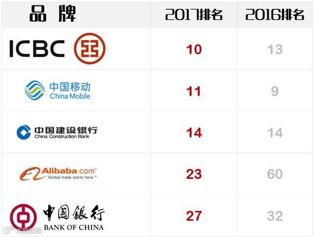 | 品牌 | 2017排名 | 2016排名 |