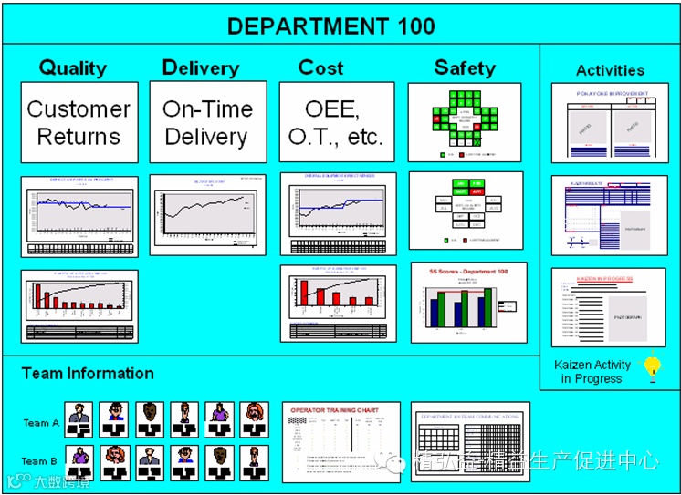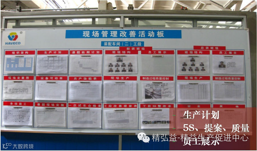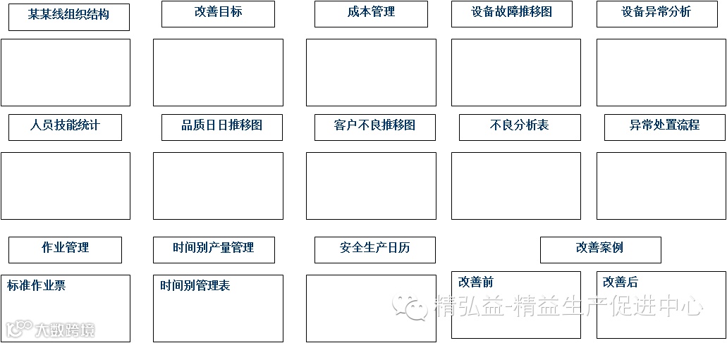 现场人员借助于目视管理板,并利用形象直观,色彩适宜的各种视觉感知信息(表格、图形、数据、颜色)来组织、管理和改善现场生产活动,同时可以一目了然地发现异常状态及问题点的管理方式的一种管理工具——“用眼睛来管理”。