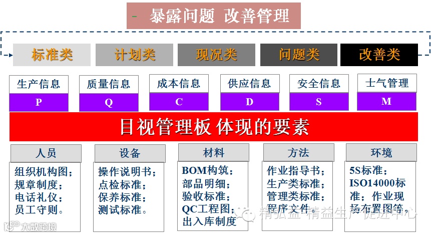 就是把工厂中潜在的问题暴露出来,让任何人一看就知道异常情形的所在.