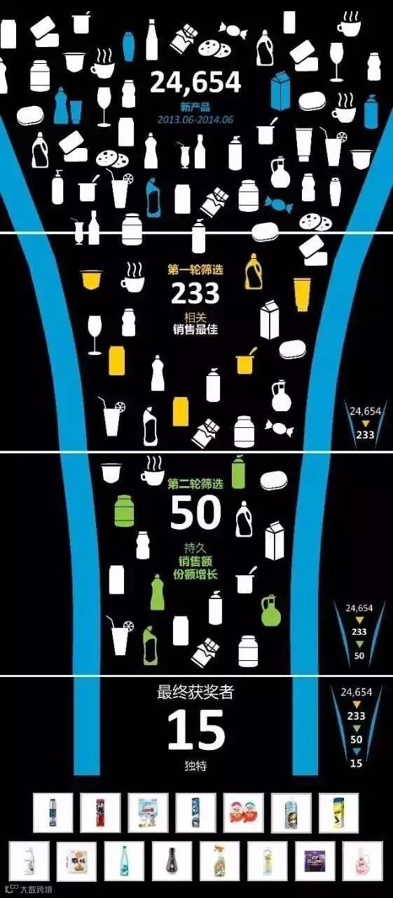 在过去的2014,2015,2016年,三年的时间之中,每一年食品行业的新品数量超过2.5万个,能在市场上销售的仅仅200余种,销售份额能够持续增长的仅仅几十种,能够在长时间存活的,仅仅十余种。