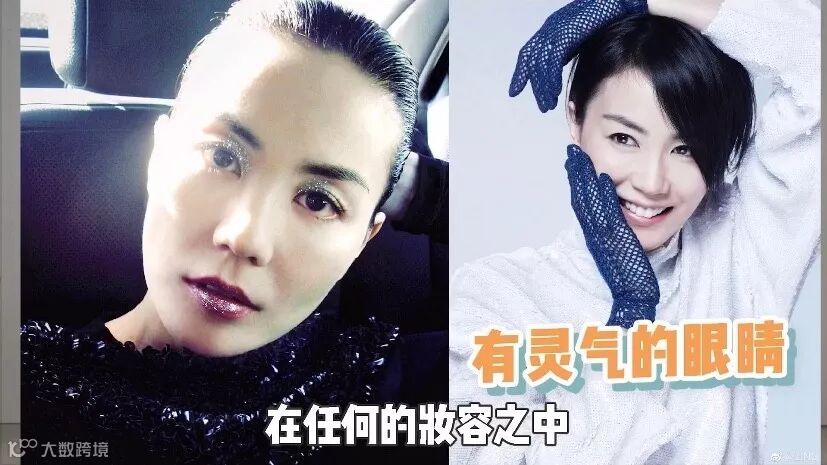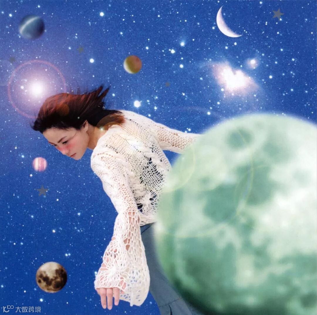 结果,王菲早早就玩起野生眉的妆容。小仙女对《寓言》专辑的封面图有印象吧。