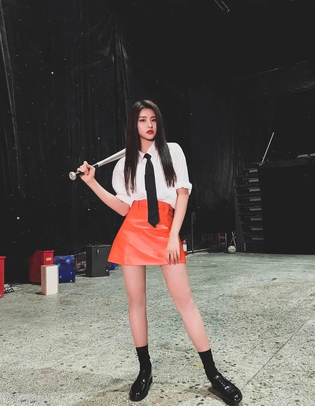 说起金子涵,她的身材大概跟关晓彤一样,身高、腿长,但是体型属于扁而不宽类型的。
