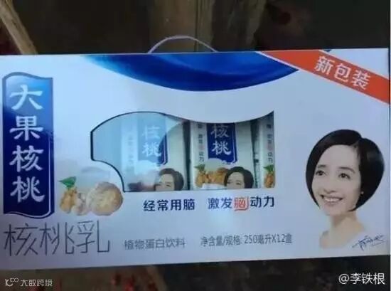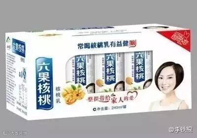 “六颗核桃”感觉是最不走心的了,代言人照片都没P过就原样往包装上印。