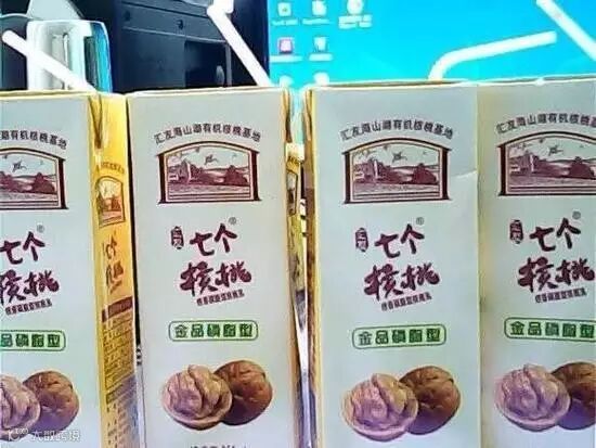 这九张图里的核桃饮料品牌包括:六果核桃、六仁核桃、大仁核桃、六大核桃、六颗核桃、至尊六个核桃、金六核桃……总之,就是在“六”和“核桃”当中改个字就对了,一股子浓厚的山寨气息。