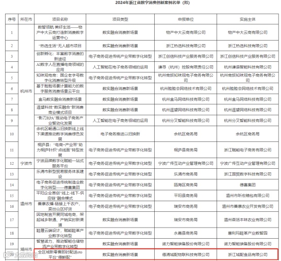 城配物联入选2024年度浙江省数字消费创新案例