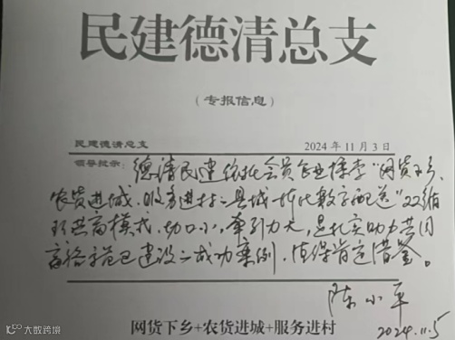 11月5日民建省委会主委、省政协副主席陈小平为企业做出批示