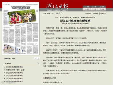 12月17日 浙江日报《手机、电脑变身新农具,快递发货、直播带货成为新农活 浙江农村电商奔向新高地》
