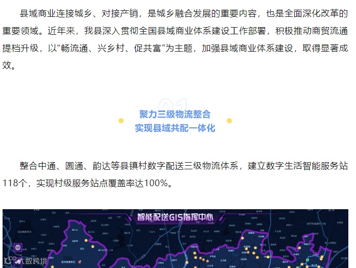 我县成功入选第二批全国县域商业“领跑县“案例集,我司“县域共配一体化”项目为其中的一部分