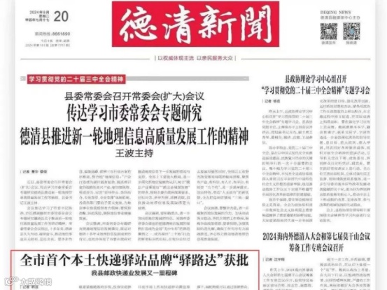 8月2日,公司成功获得批准,正式推出了自有品牌快递驿站——“驿路达”