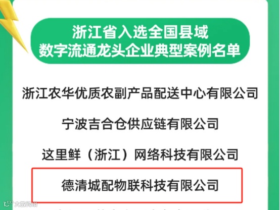 城配物联入选为浙江省全国县域数字流通领域的龙头企业典型案例