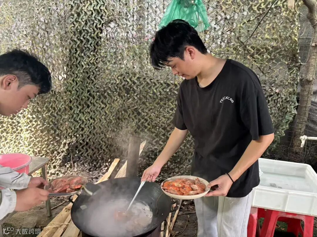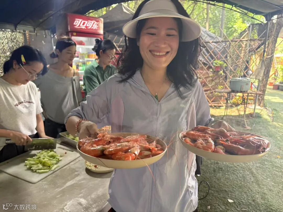 玩累了?别急,接下来 是超有烟火气的野炊时光!食材早已备好:三斤重的土鸡、新鲜鲈鱼、各类蔬菜 …… 小伙伴们分工明确,洗菜、切菜、生火、烹饪,忙得热火朝天。有人擅长颠勺炒菜,有人专注打下手,不一会儿,香气四溢的饭菜摆满一桌,大家围坐分享,品尝的不仅是美食,更是团队协作产出的 “甜蜜果实”,欢声笑语在农庄上空飘荡。