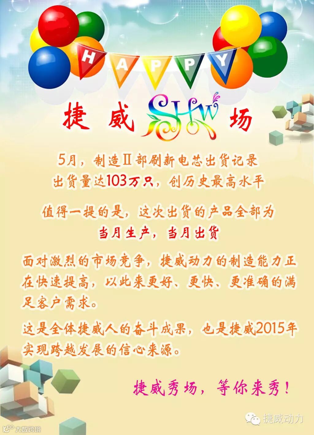 【捷威秀场】制造Ⅱ部刷新电芯月出货记录