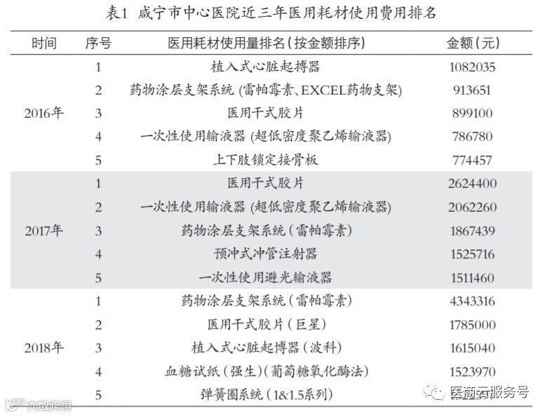 从医用耗材使用费用排名看,高值类耗材占比持续上升,干式胶片等检验耗材使用量飞速增长。
