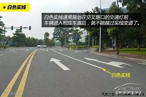 白色实线的作用是分隔同向车道,通常施划在交叉路口的交通灯前。不少人开车压线违章被拍,压的基本上就是这种标线。