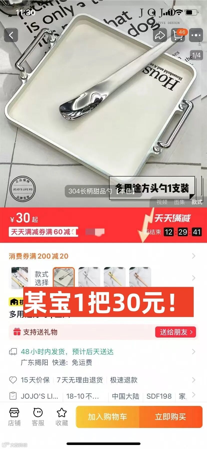 某宝单把30元