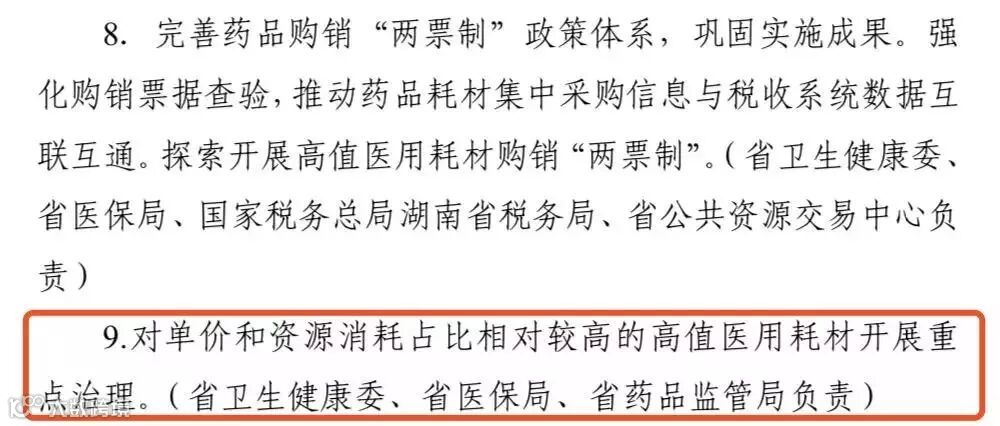 文件中特别强调,将对单价和资源消耗占比相对较高的高值医用耗材开展重点治理。由省卫生健康委、省医保局、省药品监管局负责。