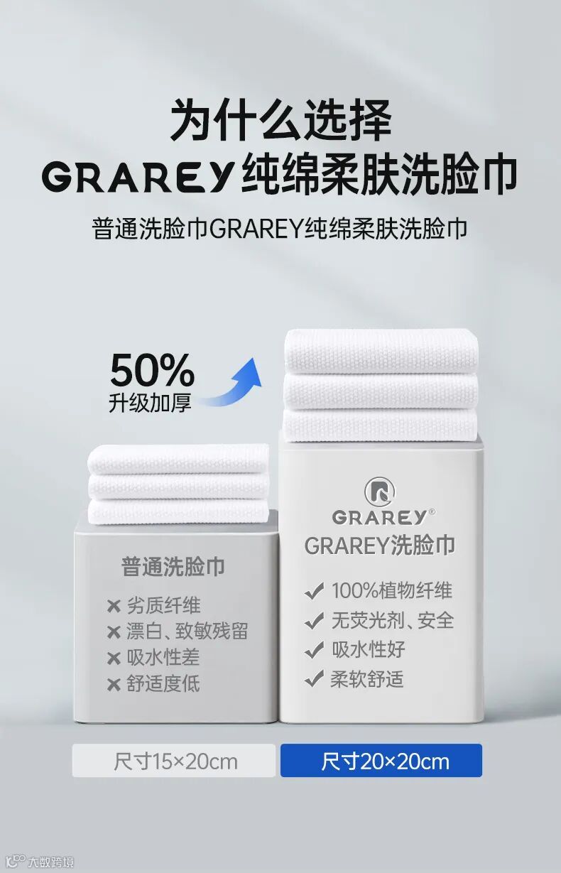 【GRAREY格瑞亚-纯绵柔肤洗脸巾】