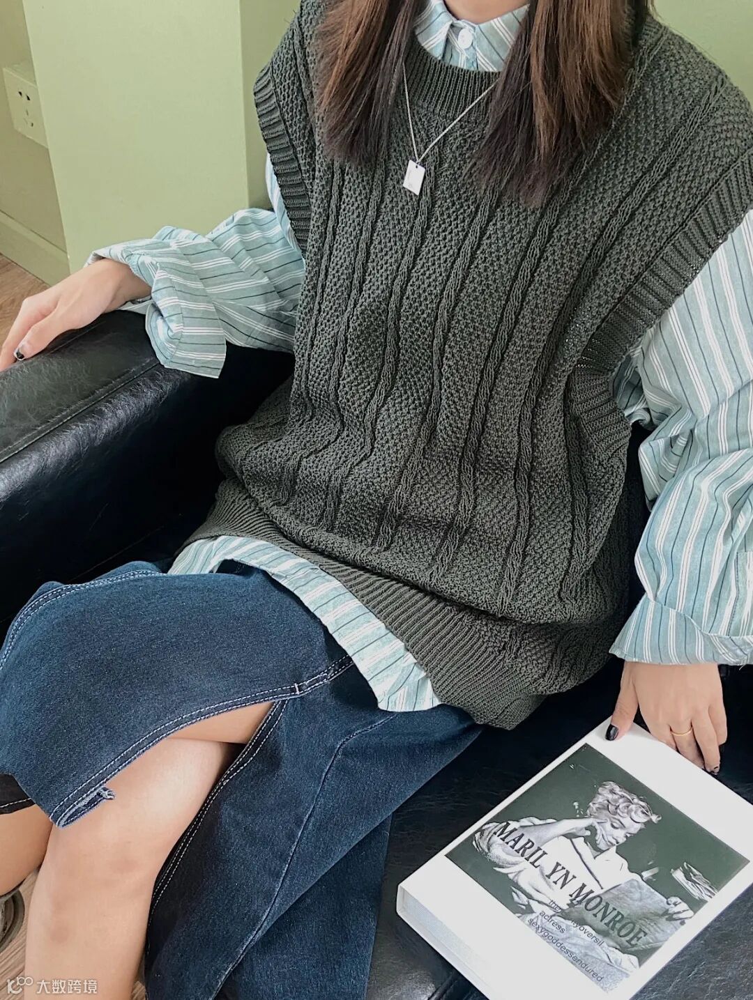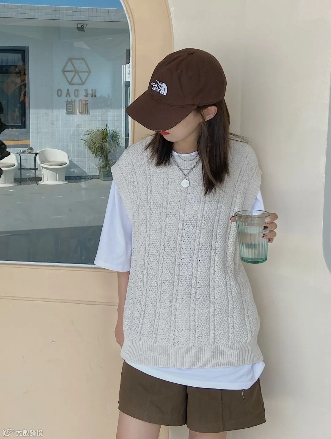 康康这款纯色亚麻针织马甲,虽然是纯色,但一点也不乏味。